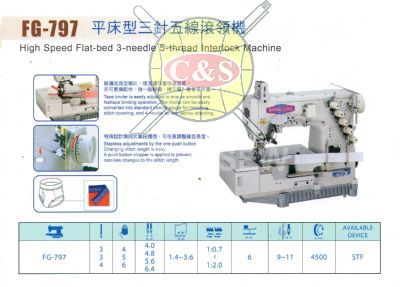 [ 3-Needle 5-Thread Flat-Bed Interlock Machine ]